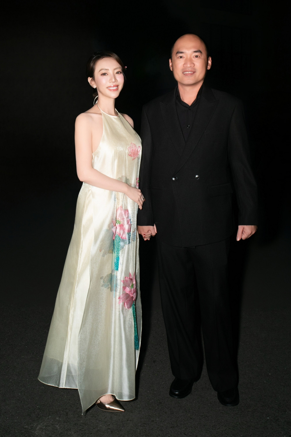 Đồng hành cùng Thu Trang là ông xã Tiến Luật trong bộ suit đen lịch lãm. Cả hai luôn song hành cùng nhau trong công việc lẫn cuộc sống, khiến nhiều người ngưỡng mộ.