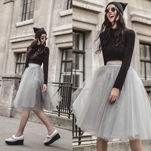 Combo áo len trơn và váy tulle chắc chắn sẽ là sự lựa chọn thông minh dành cho các cô nàng trong tình trạng thời tiết ấm áp ngày Tết.