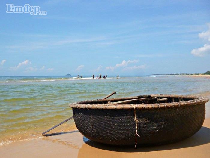 Trước khi qua đảo, bạn nên chụp vài tấm hình ở bên bãi biển với thuyền thúng nhìn đẹp ngất ngây luôn.