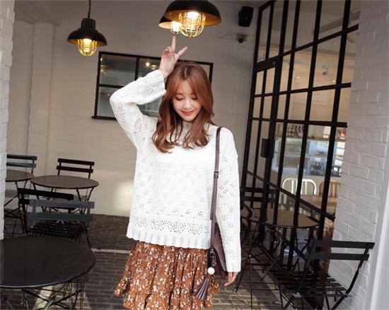 Không chiếc áo nào có thể "dễ tính" hơn áo len dệt kim bởi nó có thể kết đôi cùng nhiều item khác nhau từ quần jeans, quần skinny, quần tây, chân váy xòe... Bạn sẽ toát lên vẻ đẹp yêu kiều và nữ tính khi phối áo len dệt kim dáng suông với chân váy xòe họa tiết. Tuy nhiên, những cô nàng dáng người cao ráo hãy lựa chọn theo công thức này.