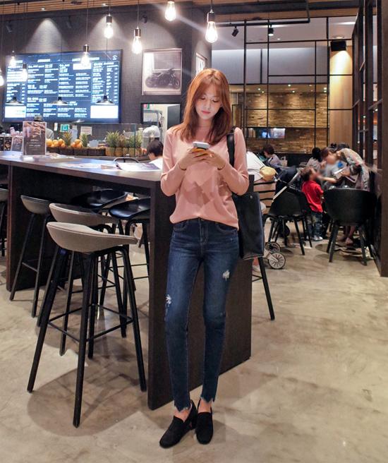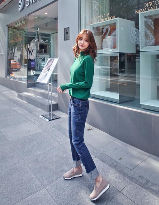 Bạn muốn tạo cái nhìn trẻ trung, năng động và mát mắt thì hãy lựa chọn ngay chiếc áo len dệt kim cổ ba phân màu xanh kết hợp quần jeans xắn gấu và giày sneaker. Đây là set đồ vừa thoải mái, xinh đẹp lại giúp bạn che chắn được những cơn gió lạnh đầu mùa.