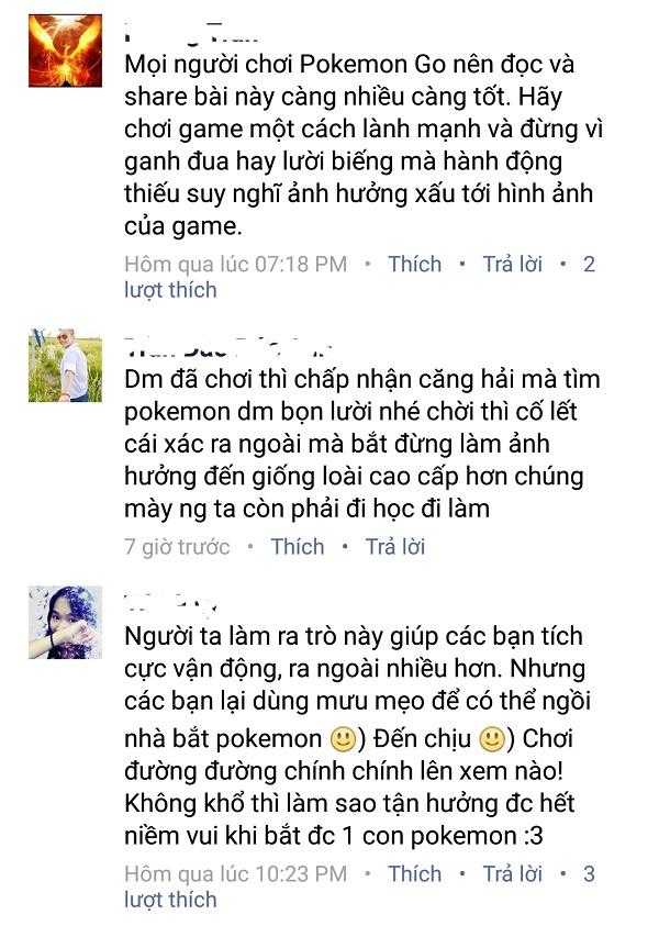 Một số cmt đề nghị bỏ game Pokemon. Ảnh chụp màn hình
