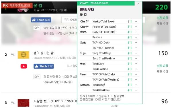 Ngày 13/3 vừa qua, BigBang đã dành tặng món quà cuối cùng cho người hâm mộ trước khi nhập ngũ - ca khúc Flower Road với sự góp giọng của cả 5 thành viên. “Bom tấn” từ boygroup nhà YG nhanh chóng khiến cả Kpop chao đảo, gặt hái nhiều thành tích khủng cả trên trường quốc tế, đặc biệt là tại Trung Quốc.