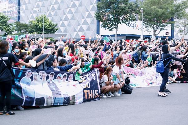 Fan của nhóm đã có mặt từ sớm để đón thần tượng. Tuy số lượng khá đông nhưng các bạn bảo nhau trật tự