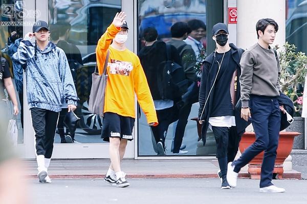 Yugyeom, Youngjae và Jackson đi ra đầu tiên.