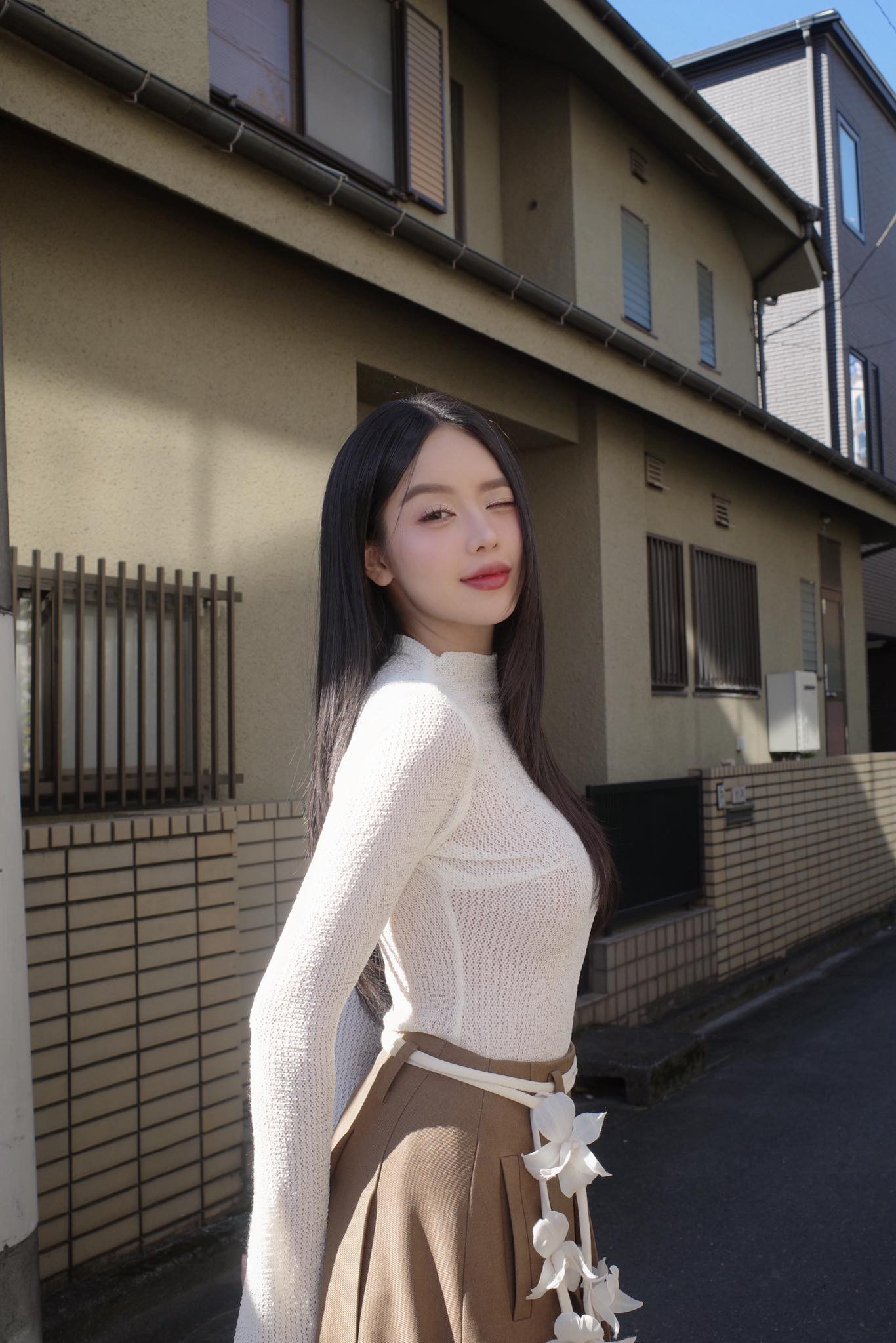 Thanh Thủy – dù là hoa hậu – cũng hiếm khi phô trương với những set đồ cầu kỳ trong đời thường. Người đẹp thường chọn váy đơn giản, áo sơ mi rộng hoặc các trang phục basic mang màu sắc trung tính. Chính sự tiết chế này giúp hình ảnh của cô luôn nhẹ nhàng, gần gũi.