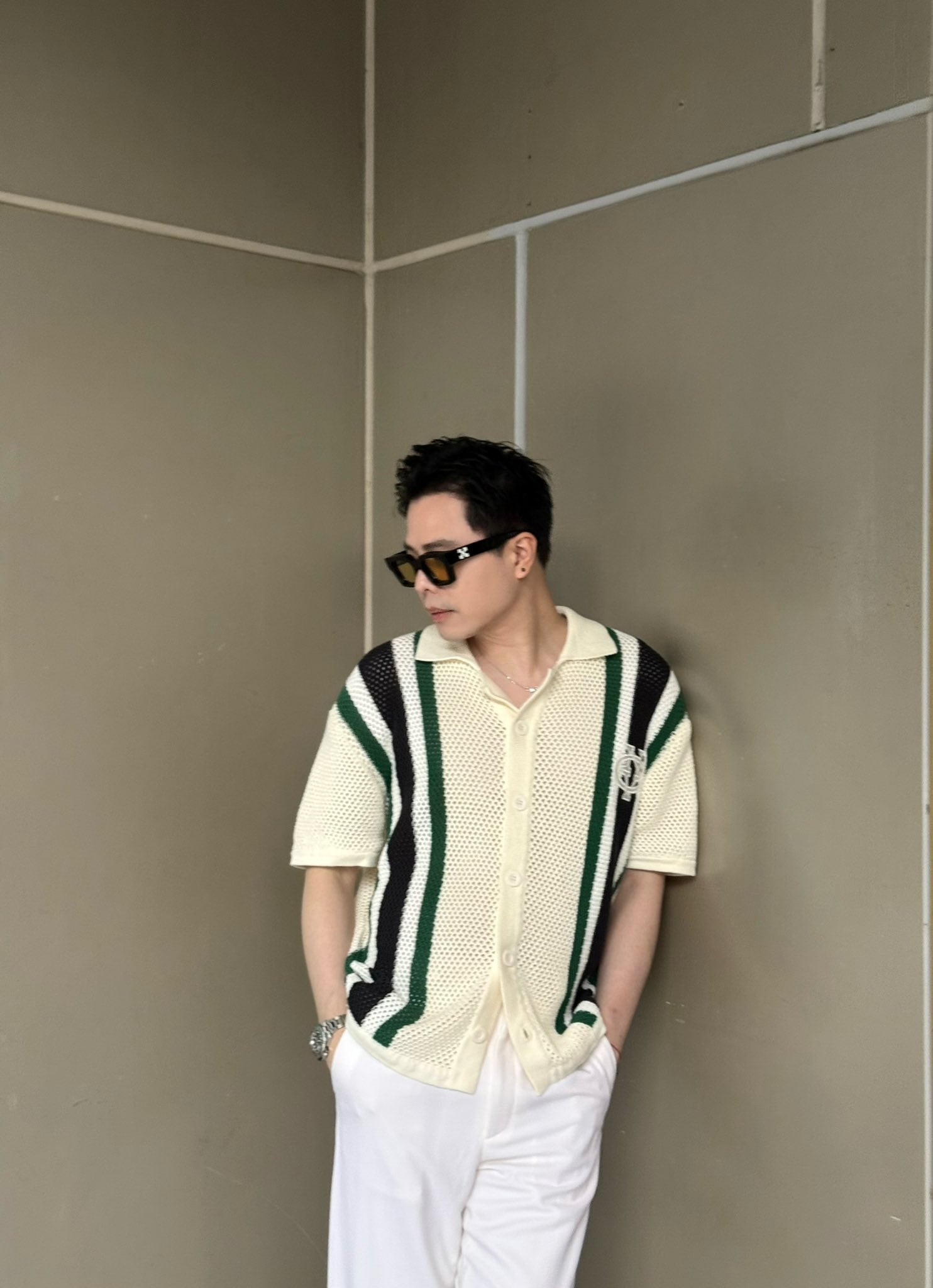 Nam ca sĩ thường xuất hiện với các item quen thuộc như áo phông tối màu, quần short hoặc quần jeans kết hợp giày thể thao – kiểu trang phục mang hơi hướng casual, dễ ứng dụng trong cuộc sống hàng ngày. Trong một lần được bắt gặp tại công ty riêng, anh diện áo tối màu cùng quần short và giày thể thao, giữ đúng tinh thần giản dị vốn có.