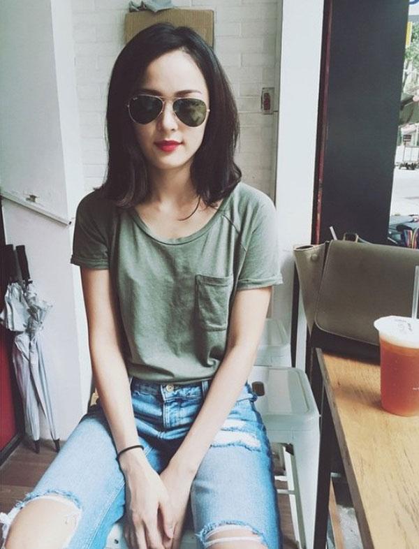 Áo thun trắng basic là trang phục cô sử dụng nhiều nhất và thường kết hợp với quần
