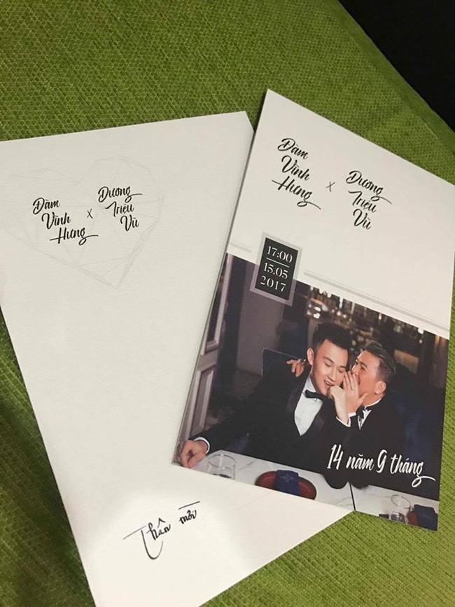 Mối quan hệ giữa Mr Đàm và Dương Triệu Vũ vẫn luôn là đề tài được công chúng đặc biệt quan tâm. Mới đây, một tấm thiệp mời có đề "Đàm Vĩnh Hưng & Dương Triệu Vũ: 14 năm 9 tháng" cùng với tên của 2 người để vào trái tim, hình ảnh vô cùng thân mật đã được cư dân mạng chia sẻ khiến nhiều người đồn đoán rằng cặp đôi rất có thể sẽ tổ chức lễ kết hôn.