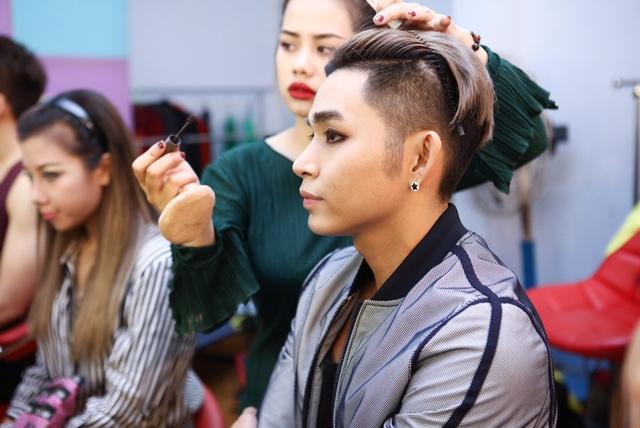 Nam ca sĩ tất bật chuẩn bị cho màn hóa thân đúng với giới tính của mình.