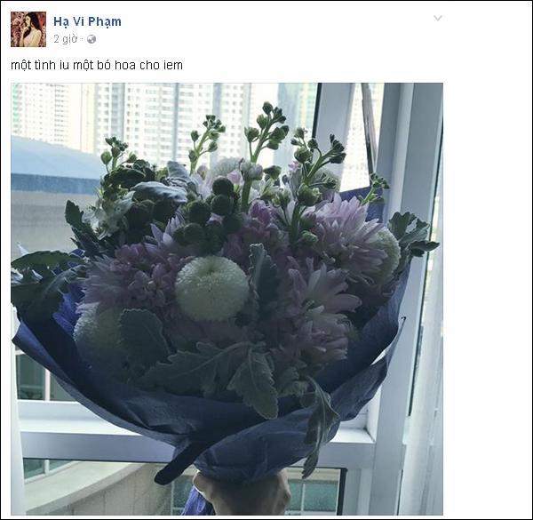 Trong ngày lễ đặc biệt dành cho phái đẹp, Hạ Vi không khỏi vui sướng khi nhận món quà giản dị nhưng đầy ý nghĩa từ bạn trai. Dòng trạng thái "một tình yêu - một bó hoa cho em" đã miêu tả hầu hết niềm hạnh phúc rạng ngời của "cô Tấm" Hạ Vi.