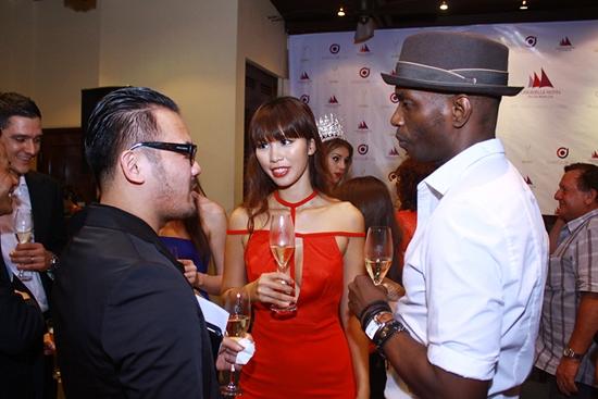Hà Anh trao đổi với người sáng lập của Miss Global. Cùng với sự kiện này,