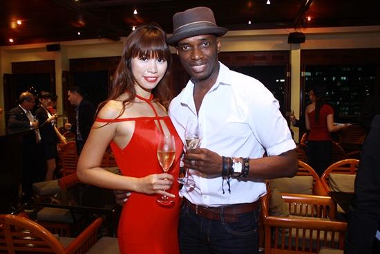 Hà Anh diện một chiếc đầm đỏ khoét ngực khá tạo bạo.
