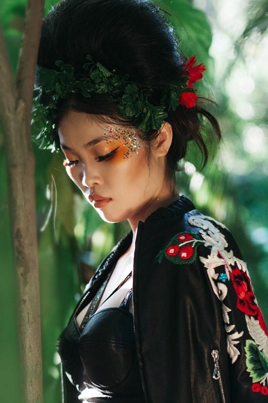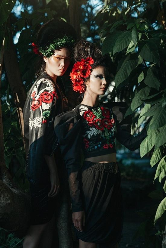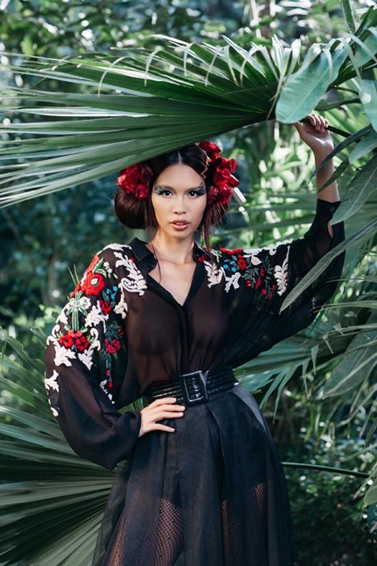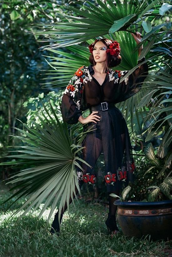 Bộ hình lấy cảm hứng từ cây cối và hoa lá của thiên nhiên nhiệt đới, siêu mẫu Hà Anh cùng dàn học trò, người mẫu trẻ Bella Hoàng Vũ, Bích Trâm, Vũ Nhung cùng khoe sắc trong bối cảnh cây xanh và hoa lá.