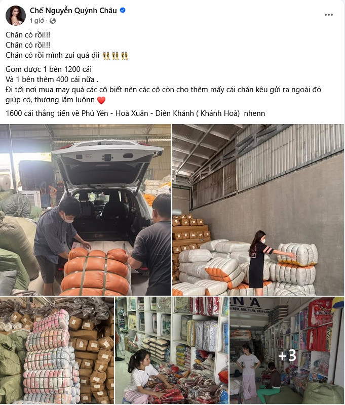 Khánh Vân cho biết: "Hướng về bà con miền Trung thân yêu. Hôm nay Vân cùng các anh chị đã chuẩn bị những phần quà nhỏ nhưng thật nhiều yêu thương, các nhu yếu phẩm: mì gói, nước uống, đồ hộp, bvs… để đem đến địa điểm tập kết tại Nhà Văn hoá Thanh niên TP.HCM.