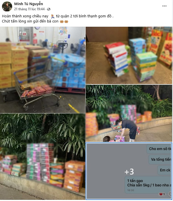 Mỗi người chung tay một việc để gửi nhu yếu phẩm cùng tình cảm yêu thương đến bà con miền Trung. Hy vọng sẽ phần nào sẻ chia với bà con cùng nhau vượt qua khó khăn trong thời điểm hiện tại. Những ngày qua, cả nước cùng hướng về miền Trung thân yêu, hơn bao giờ hết đây là lúc chúng ta đồng lòng chung sức, chung tay cùng bà con khắc phục những ảnh hưởng mà thiên tai để lại.