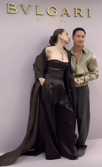 Ông xã Kim Lý cũng lên đồ đồng điệu. Cả hai được khen đẹp đôi, góc nghiêng nhiều nét phu thê đúng là "sinh ra là dành cho nhau".