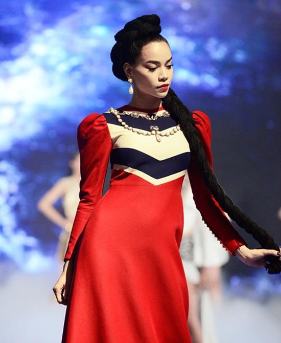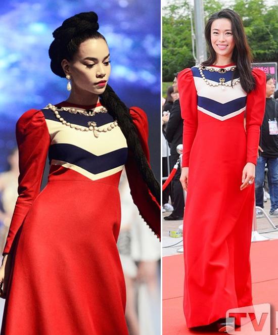 Khi so hình ảnh hai ngôi sao "mặc chung" chiếc váy, Hà Hồ nhìn sang trọng và đẳng cấp hơn hẳn. Chiếc váy đến từ thường hiệu Gucci và có giá 10.000 USD (khoảng 220 triệu đồng).