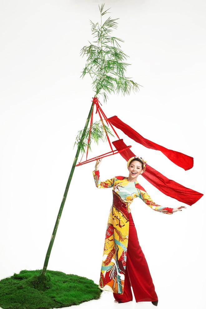 Trong bộ ảnh “Giữ Tết truyền thống - sống Tết hiện đại”, Chi Pu đại diện cho biểu tượng về