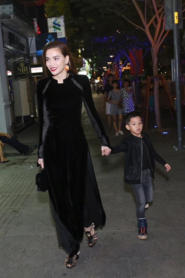 Diện chiếc áo dài đen từ bộ sưu tập Tonkin, tóc xõa quăng tự nhiên và chọn màu son môi đỏ, ca sĩ “Destiny” gây ấn tượng nổi bật. Ít ai biết, Hồ Ngọc Hà là bạn thân lâu năm của Kelly Bùi. Chính vì thế, cô đã nhiệt tình dắt theo cả Subeo tham dự sự kiện giải trí đông người, vốn là điều người đẹp luôn cố tránh trước đây.