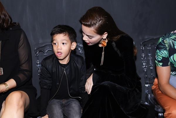 Cậu quý tử của Hồ Ngọc Hà tỏ ra khá dạn dĩ, rất tự tin tạo dáng trước ống kính máy ảnh và trò chuyện tự nhiên với người quen của mẹ.