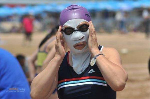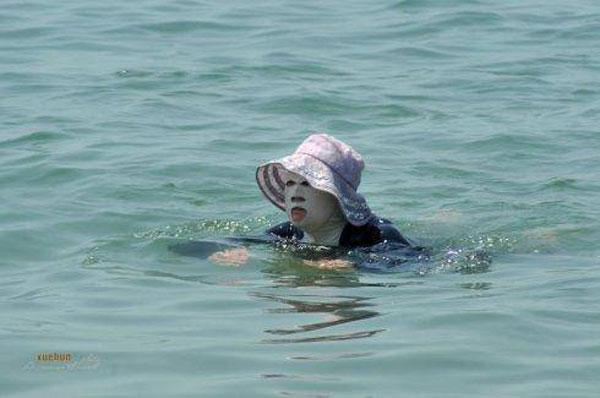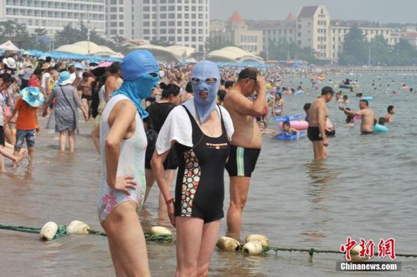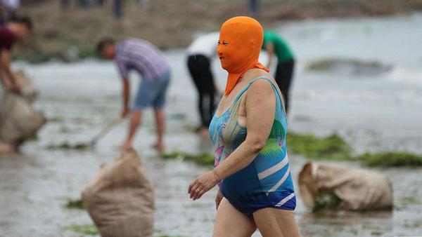 Tại các bãi biển ở Thanh Đảo, không khó để người ta có thể bắt gặp các chị phụ nữ toàn thân được bao bọc bởi lớp cao su chống nắng chỉ để hở mỗi hai cái mắt. Nhiều cư dân mạng bình luận rằng, đi biển là để nước mát ngấm vào da mà các chị ấy lại làm như vậy thì còn gì là thú vị nữa. Thật là đáng phí.