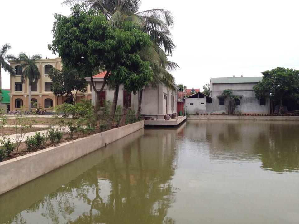 Theo người dân, ao đã được dọn dẹp sạch sẽ, xây tường bao quanh, mép ao mới được xây dựng một căn nhà, phần móng chìa ra ao là những cột bê tông vững chắc.