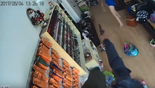Theo nội dung đoạn video chia sẻ trên mạng xã hội, một nam thanh niên mặc quần áo tối màu, đội mũ lưỡi trai và bịt khẩu trang bước vào bên trong tiệm nail. Vừa xuất hiện trong tiệm nail, nam thanh niên đã đưa chiếc súng ra uy hiếp và yêu cầu chủ tiệm nail đưa tiền, điện thoại. Trong lúc lợi dụng sơ hở của kẻ cướp chủ tiệm nail đã chống đối lại làm văng chiếc súng xuống sàn.