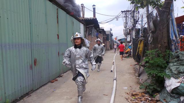 Lực lượng chữa cháy gặp khó khăn vì khói quá dày đặc.