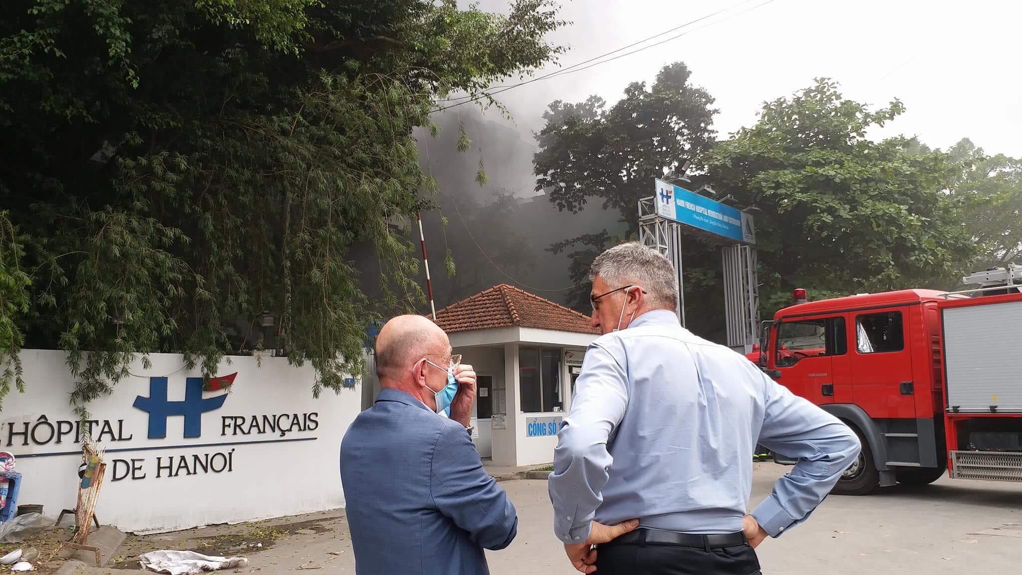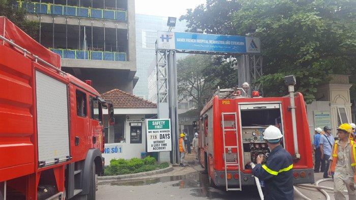 Đám cháy xảy ra vào khoảng chiều nay, tại tòa nhà đang xây dựng mở rộng của BV Việt - Pháp (phố Phương Mai, Hà Nội). Ít phút sau, cột khói bốc cao nghi ngút, khói đen mù mịt cả một vùng.