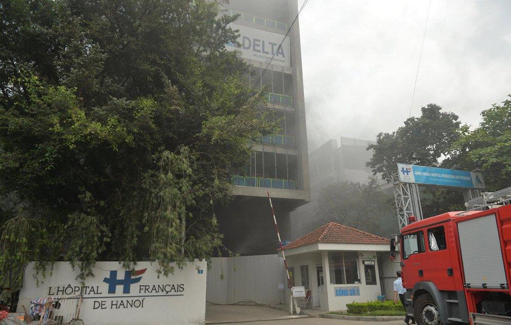 Đám cháy xảy ra vào khoảng chiều nay, tại tòa nhà đang xây dựng mở rộng của BV Việt - Pháp (phố Phương Mai, Hà Nội). Ít phút sau, cột khói bốc cao nghi ngút, khói đen mù mịt cả một vùng.