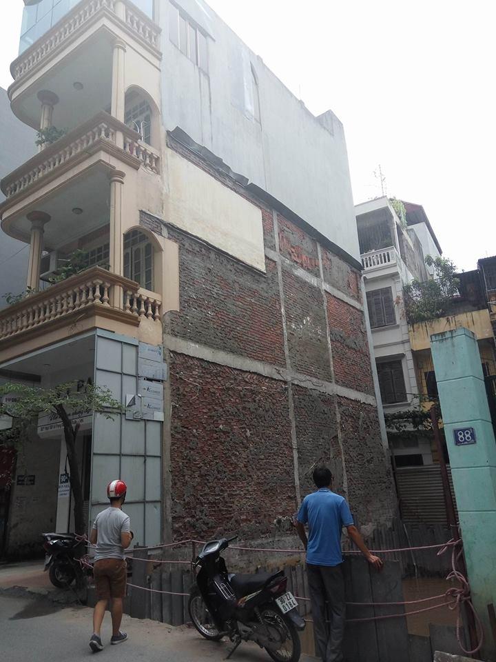 Còn đây là một ngôi nhà nằm tại ngõ 192 Lê Trọng Tấn, Hà Nội. Ngôi nhà cao chót vót nằm bên cạnh cái hố móng ngập nước rất sâu của nhà hàng xóm. Hình ảnh này không khó để thấy tại Hà Nội. Những căn nhà nằm treo leo bên cạnh một hố sâu đang được đào bới mỗi ngày.
