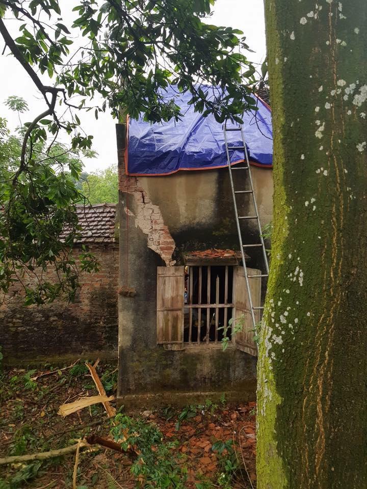 Sau cú sét đánh, chị T. tử vong tại chỗ, còn anh B. và cháu bé may mắn thoát nạn, mái nhà bị hư hỏng nặng, cây keo sau nhà bị gãy một cành to.