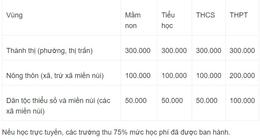Theo Dự thảo Nghị quyết về học phí năm học 2023-2024 của Hà Nội công bố ngày 15/5, học phí với học sinh vùng thành thị là 300.000 đồng một tháng; vùng nông thôn 100.000-200.000 đồng, vùng dân tộc thiểu số 50.000-100.000 đồng.