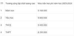 Mức trần học phí với các trường chất lượng cao như sau (đơn vị: đồng/học sinh/tháng):