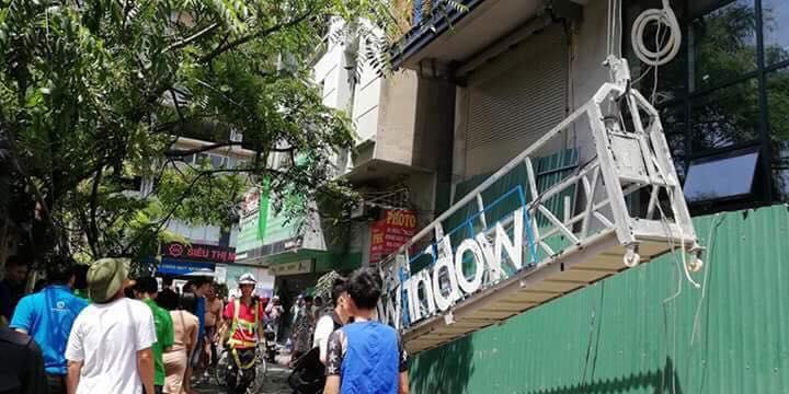 “Tôi đang ở trong nhà thì nghe một tiếng 'rầm' rất mạnh, chạy ra thì thấy chiếc thang vận chuyển cuộn tốc bị đứt 1 bên dây rơi xuống đè trúng 2 người ngồi phía dưới đường, trong ngõ 178 Thái Hà. Lúc này, trên thang cuộn tốc có 2 công nhân, nhưng may mắn là họ nhảy được ra ngoài và không sao” - một nhân chứng kể lại.
