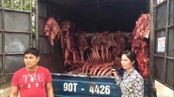Sau đó 10 phút, tổ công tác tiếp tục phát hiện xe ô tô tải mang BKS 90T - 4426 đag đi theo hướng Phú Xuyên - Thường Tín chở khoảng 400 kg thịt bò không có nguồn gốc xuất xứ.