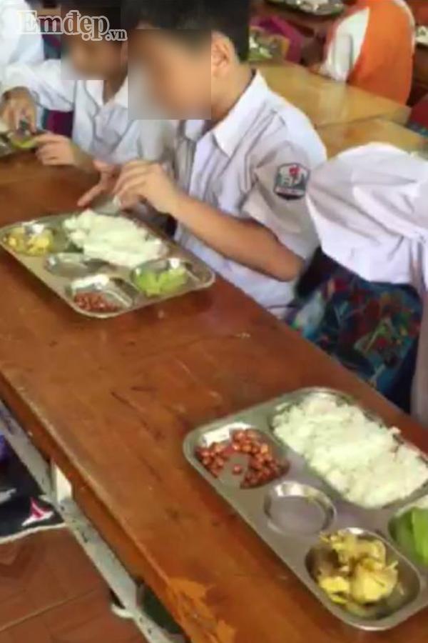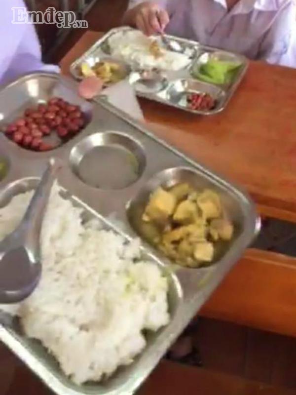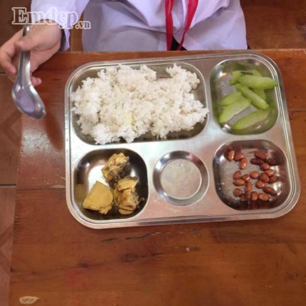 Trong lần kiểm tra đột xuất vào tháng 10/2017, chị L. đã chụp được ảnh bữa ăn của con chỉ có cơm trắng, ba miếng thịt gà, lèo tèo chút bí xào và lạc rang.