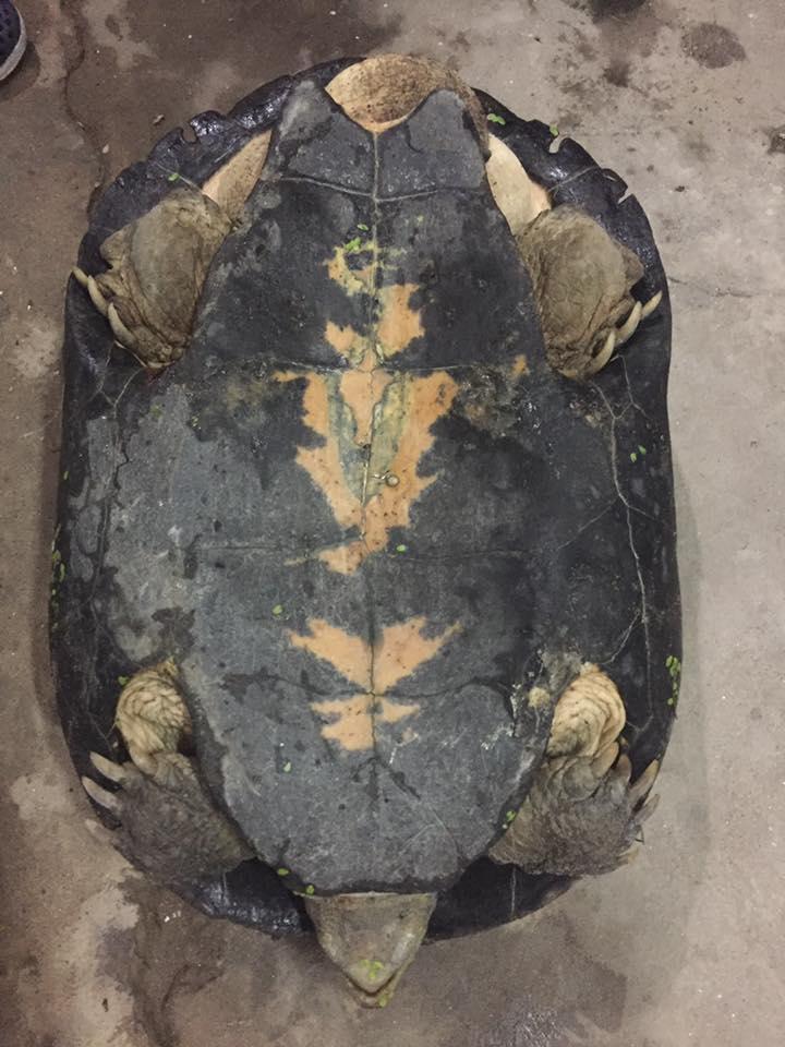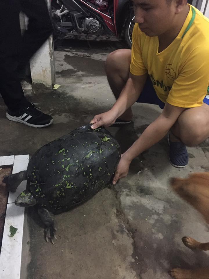 “Thấy lạ, chúng tôi cùng hàng xóm đến kiểm tra thấy con rùa vẫn còn sống. Con rùa nặng khoảng 15kg, dài khoảng 60cm và vẫn hoàn toàn khỏe mạnh, không bị thương tích gì”, anh An nói.