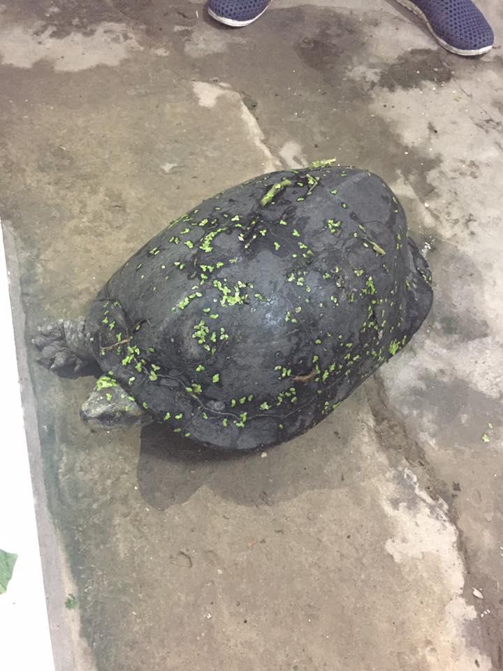Tối 20.6, con rùa lớn bất ngờ bò lên bờ nằm trước cửa nhà dân.