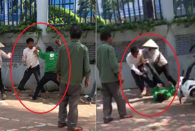Trong đoạn clip, người đàn ông áo trắng được xác định là tài xế xe ôm truyền thống đã kéo chân một nam mặc áo Grab Bike. Hai bên liên tục đạp đá nhau, thấy vậy nhiều người đã lao vào can ngăn. Tức giận, bất chấp sự can thiệp của mọi người, tài xế Grab Bike đã cầm gạch ném vào tài xế xe ôm nhưng không trúng. Rất may vụ việc không làm ai bị thương.