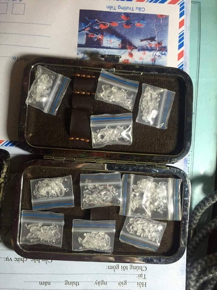 Tại chốt kiểm tra, tổ công tác phát hiện trong túi quần của đối tượng có một ví da bên trong có 11 gói nilon nhỏ đựng các hạt tinh thể trắng nghi là ma tuý đá.
