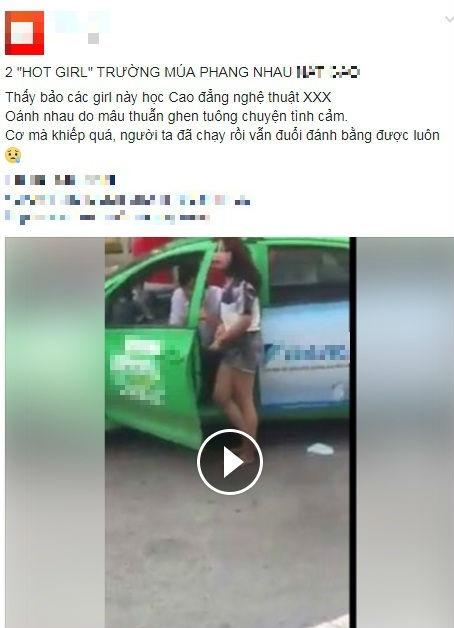 Theo đó, đăng kèm clip trên là note: “2 ‘hot gir’' trường múa đánh nhau. Thấy bảo các girl này học Cao đẳng nghệ thuật. Họ đánh nhau do mâu thuẫn ghen tuông chuyện tình cảm. Cơ mà khiếp quá, người ta đã chạy rồi vẫn đuổi đánh bằng được luôn”.