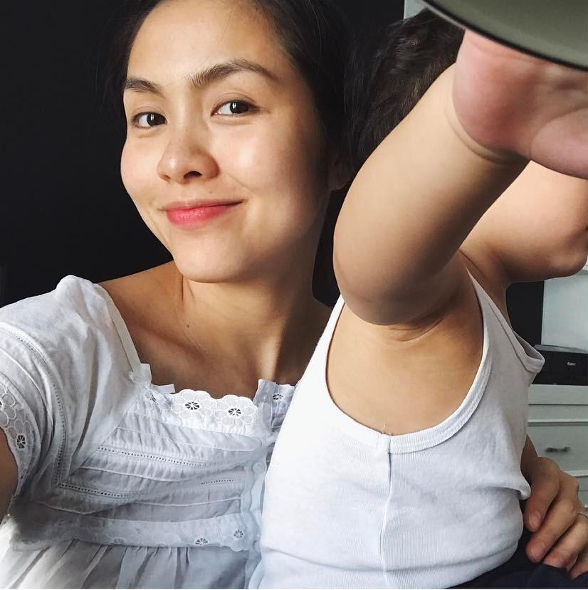 Tăng Thanh Hà bên con trai ngày 01 tết