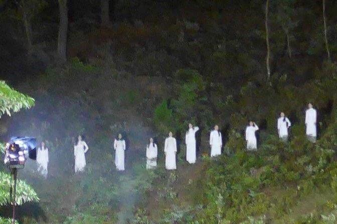 Chương trình nghệ thuật Đồng Lộc - Bài ca bất tử diễn ra tối 21/7 xuất hiện hình ảnh clip lần lượt 10 cô gái mặc áo dài trắng đứng trên đồi thông và dần tan biến tượng trưng cho 10 nữ TNXP đã hy sinh.