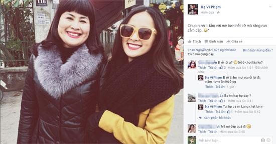 Mới đây nhất, trên trang cá nhân của mình Hạ Vi đăng tải hình ảnh rạng rỡ bên mẹ khi cô về thăm gia đình dịp giáp Tết. Cô chia sẻ: "Chụp hình 1 tấm với mẹ tươi hết cỡ mà răng run cầm cập."