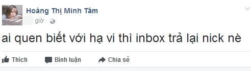 "Lúc trước có nói chuyện với người quản lý Hạ Vi để gửi lại nick cho nàng tấm xinh đẹp dễ thương đáng yêu hiền thục nết na, nhưng lại nhận được một câu trả lời phũ phàng. Thôi thì... đường không đi đường mọc đầy cỏ dại. Người không qua lại sẽ thành người dưng", Facebooker viết.