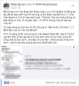 Chị báo công an hộ nha chị Phi Nhung ơi. Báo là có một ổ ở đây núp lùm làm trò đê tiện. Hình như lúc sáng là lần cuối cùng chúng mày report được đó, tao chỉ thử nghiệm thôi. Chiều tao lấy 4 - 5 nick có tick xanh chơi với chúng mày.