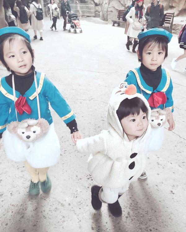 Chị Ayako thường chọn cho các bé những trang phục đơn giản, không cầu kì. Và vì là sinh đôi, nên quần áo của hai bé về tổng thể là giống hệt nhau, tuy nhiên, mẹ hai bé vẫn thêm vào một số phụ kiện hoặc tiểu tiết khác nhau, có thể là kiểu dáng, có thể là màu sắc, ví dụ như: Khăn, giày, họa tiết trên quần, chữ viết trên áo..