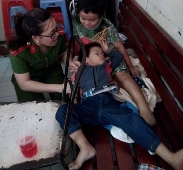 “Lúc đó bé trai đầu 5 tuổi, mặc đồ bộ, đi dép hai quai, riêng bé trai sau 3 tuổi mặc quần áo dài tay có áo khoác bên ngoài nhưng đi chân đất. Cả 2 bé lúc này đói bụng, khuôn mặt lấm lem bùn đất như không được tắm rửa, rất tội nghiệp”, một cán bộ kể lại.